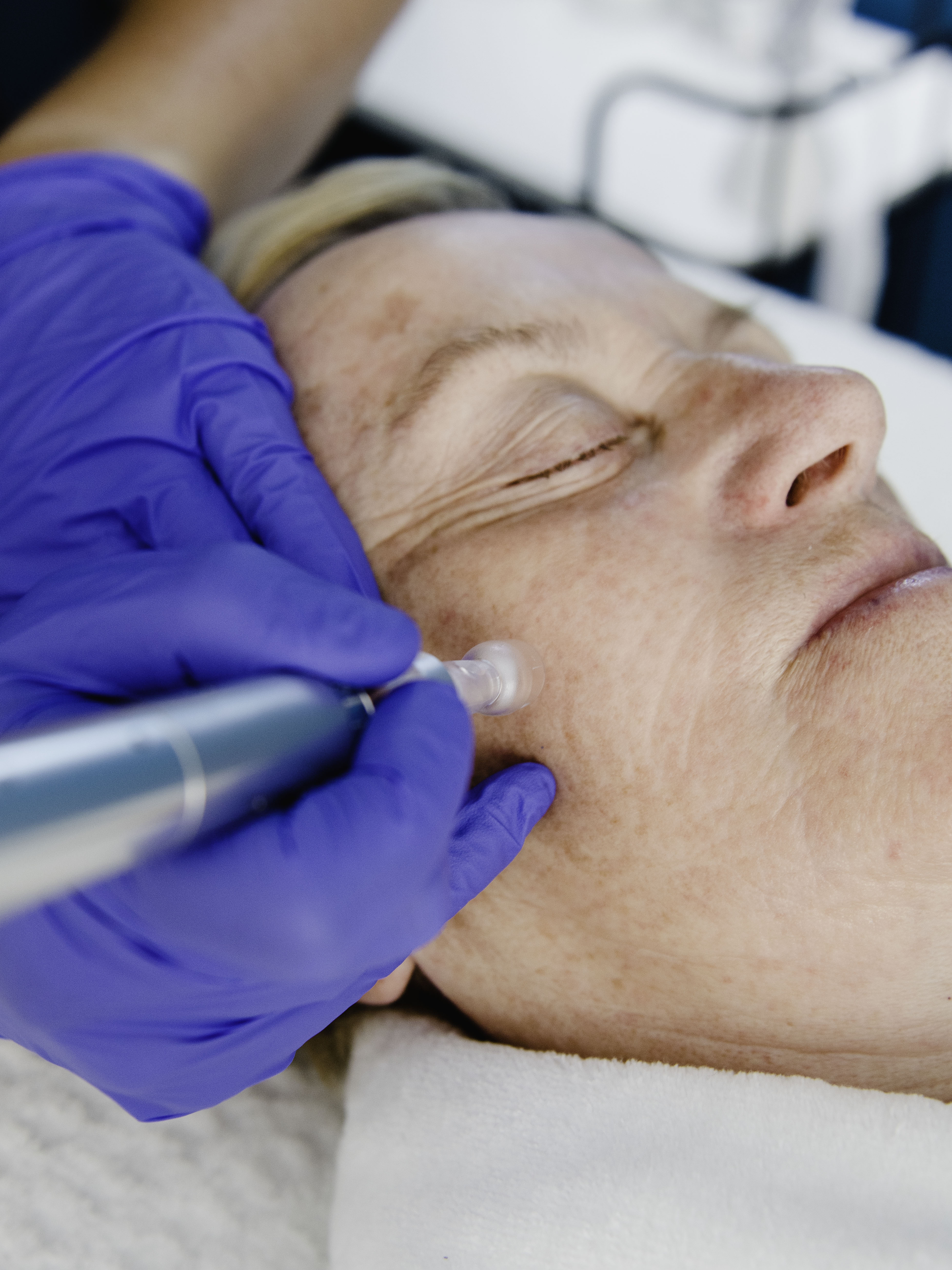 Dermaplaning is a skin treatment that uses a specialised blade at a 45 degree angle to gently remove dead skin and vellus hair (peach fuzz) with zero downtime. The skin is deeply exfoliated and left smoother & brighter, radiating a healthy glow.